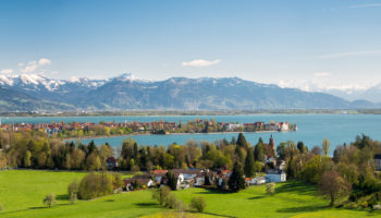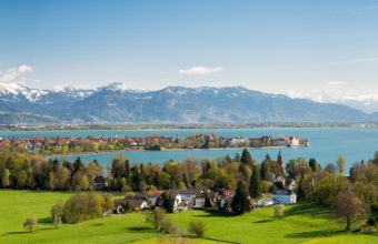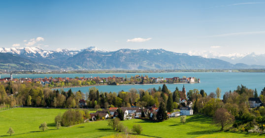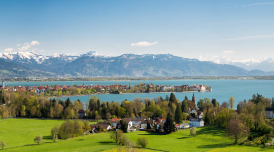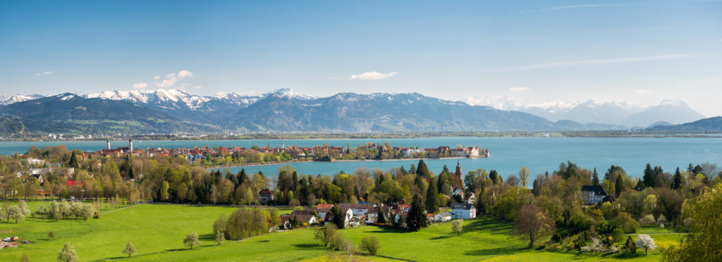 Blick auf die Halbinsel Lindau und die Alpen