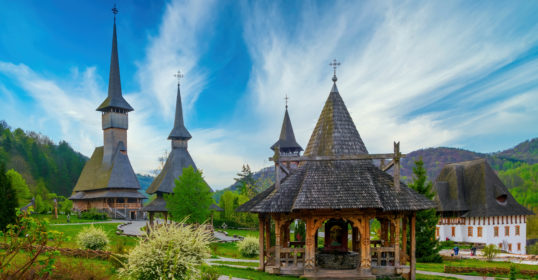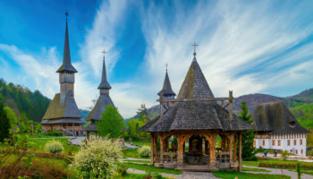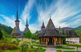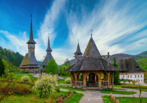 Traditional Maramures wooden architecture of Barsana monastery, Romania
